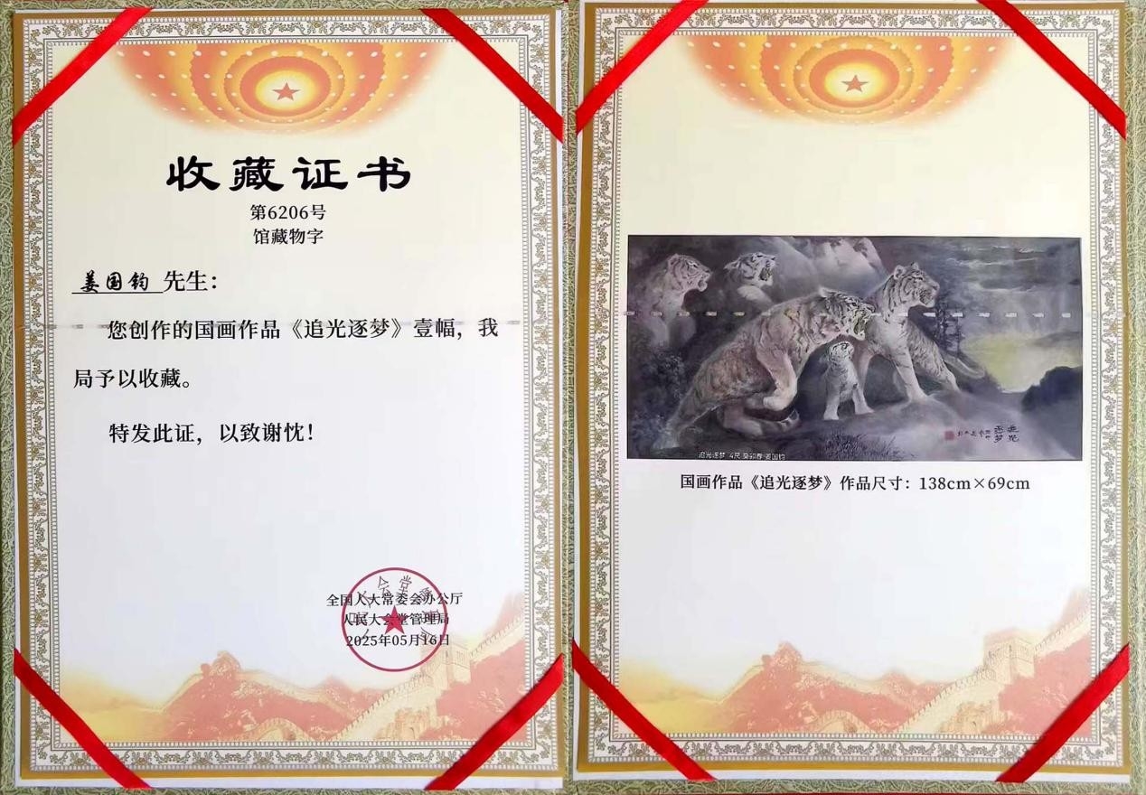 The works "Golden Tigers Full House, Fortune and Auspiciousness", "Chasing Light and Dreams", "Tiger Show Auspiciousness", "Nine Heavens Moon", "Listening" and "Tiger Charm" have been selected for the "China, Great Beautiful China" Art Summit Exhibition in Times Square, New York.