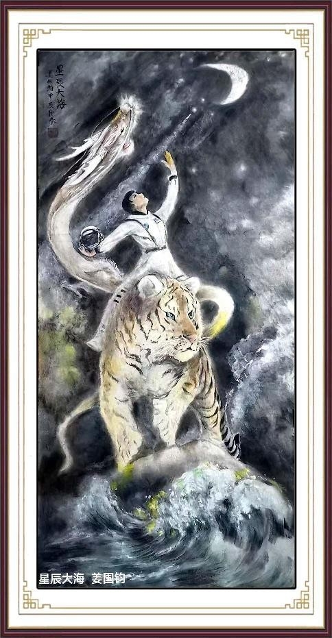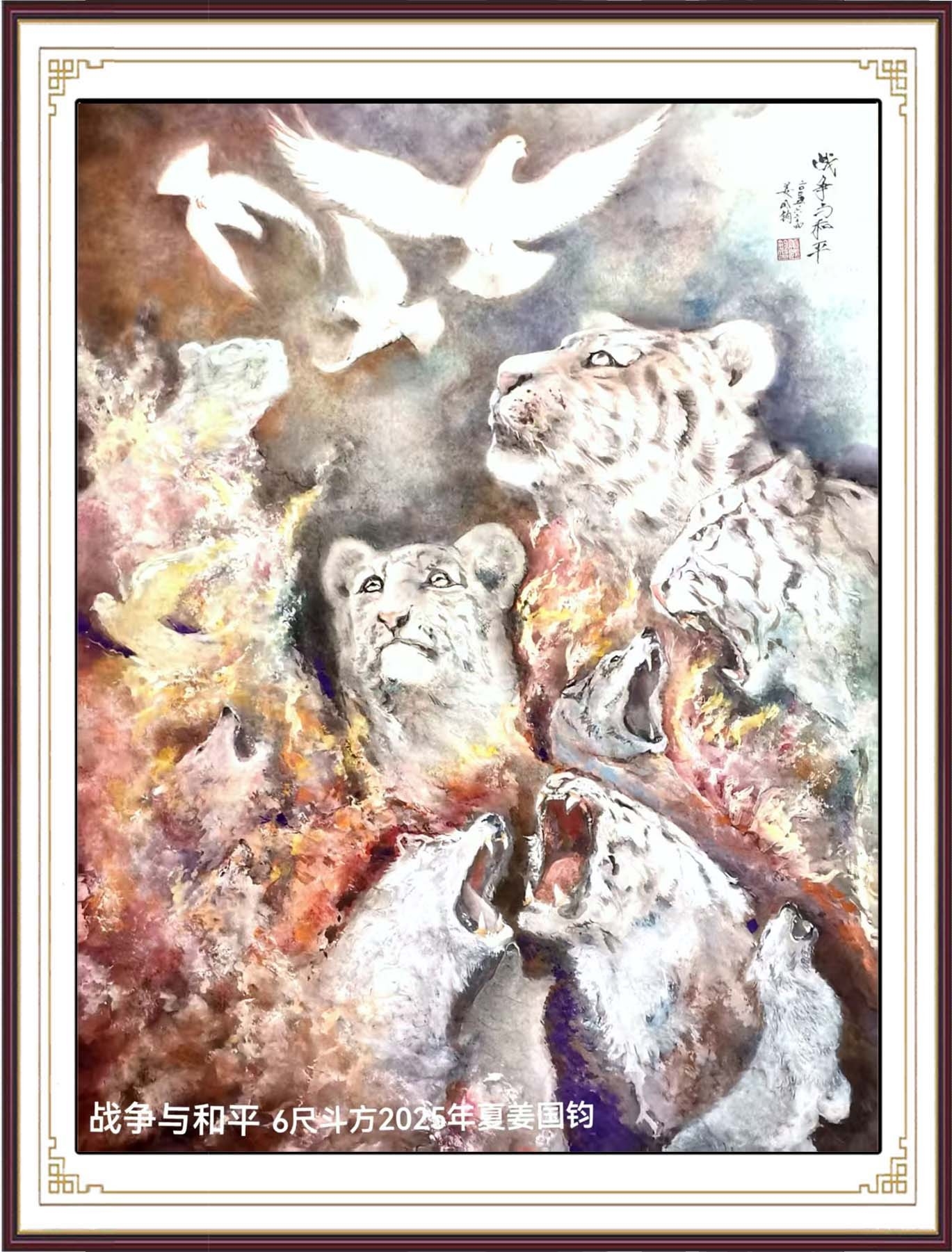 As a national first-class artist and a special guest gift artist, Jiang Guojun's artistic achievements are highly recognized. He serves as a visiting professor at the Central Academy of Fine Arts and an art mentor at CCTV. He is also an honorary doctorate in art from Colorado Engineering University and a specially appointed painter at the Tsinghua Academy of Fine Arts. Jiang Guojun's works are widely acclaimed, including "Pleasant Goat and Happy Sheep" which are treasured by the National Museum, and "Island Treasure Painting" which was awarded the "Most Valuable Collection Award" by the Chinese Painting and Calligraphy Art Guidance Committee. Many of his works, such as "Golden Tigers Full House, Fortune and Auspiciousness", "Chasing Light and Dreams", "Tiger Show Auspiciousness", "Nine Heavens and Moon", "Listening" and "Tiger Charm", have been selected for the "China, Great Beautiful China" exhibition in Times Square, New York, showcasing the charm of Chinese art.
