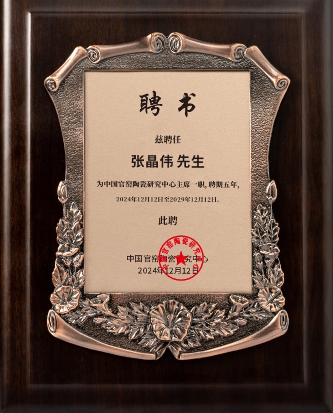 2024年12月被中国官窑陶瓷研究中心聘为主席一职。