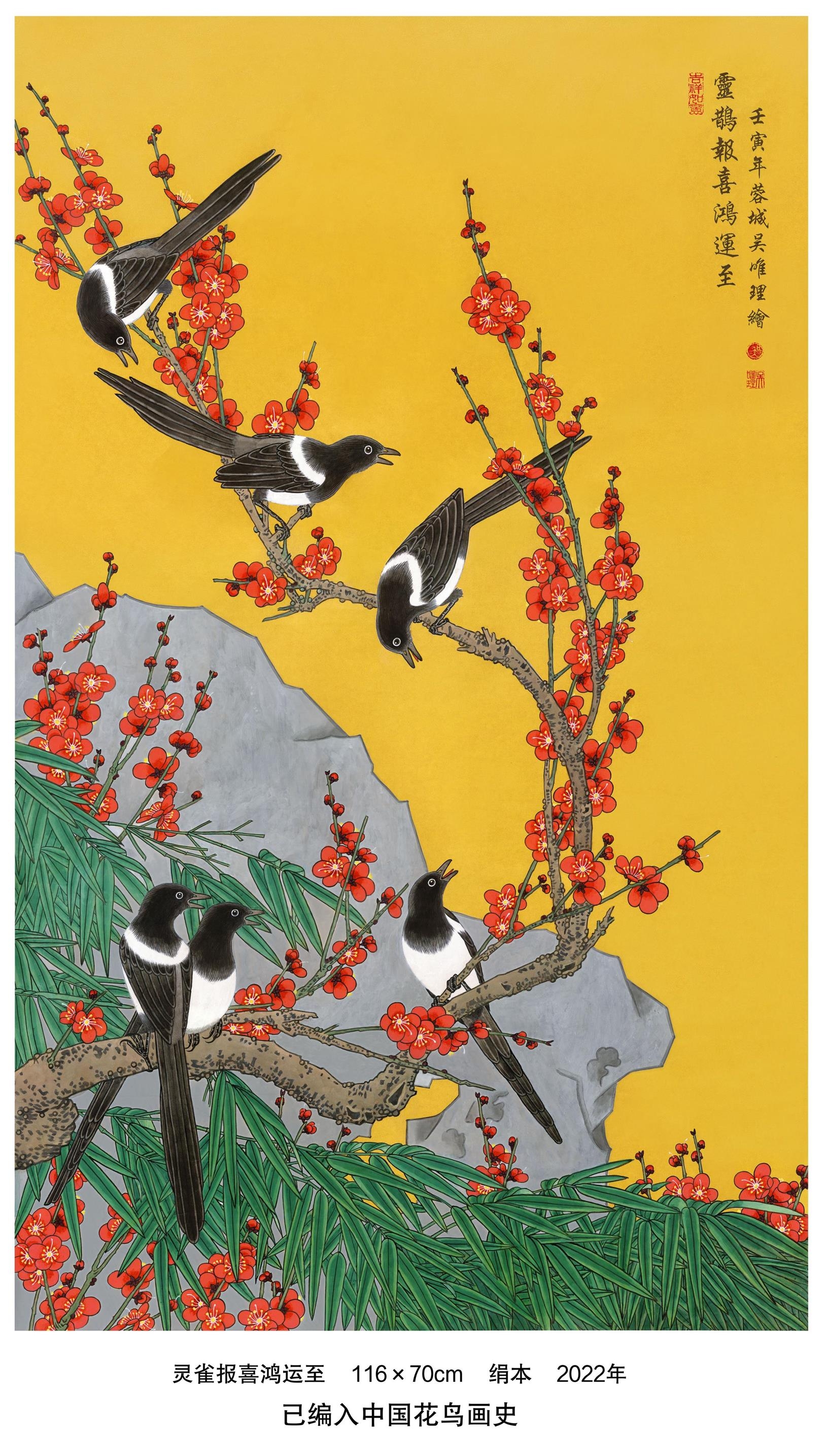 代表作品《九龙呈祥图》被人民大会堂收藏;《九龙拥宝图》镶刻于中国八达岭新长城;《持莲观世音菩萨》被中国国家博物馆收藏;《福至图》被俄罗斯列宾美术学院收藏;《吉祥金瓜图》被英国皇家美术学院收藏;《仙女下凡图》被法国巴黎国立高等美术学院收藏。个人传略及作品已载入中国国际交流出版社出版的《世界名人录》,中国文化出版社出版的《中国书画通史近现代卷》,以及红旗出版社出版的《图说中国当代美术史》。