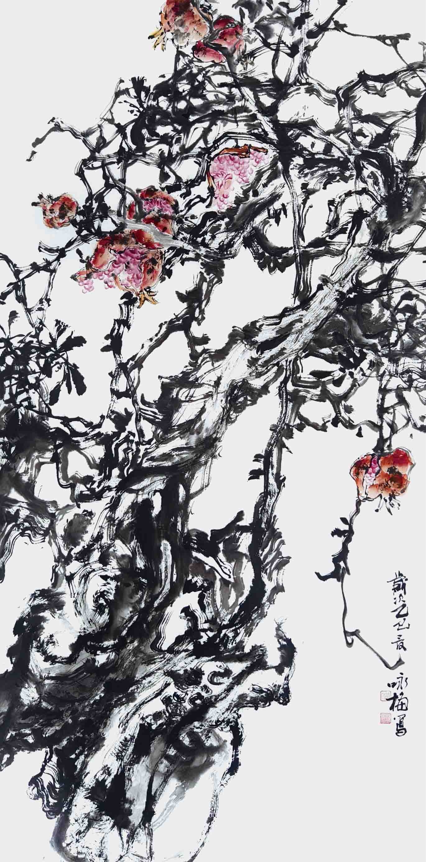 胡咏梅国画作品《红冠吐艳》收藏于中国国家博物馆