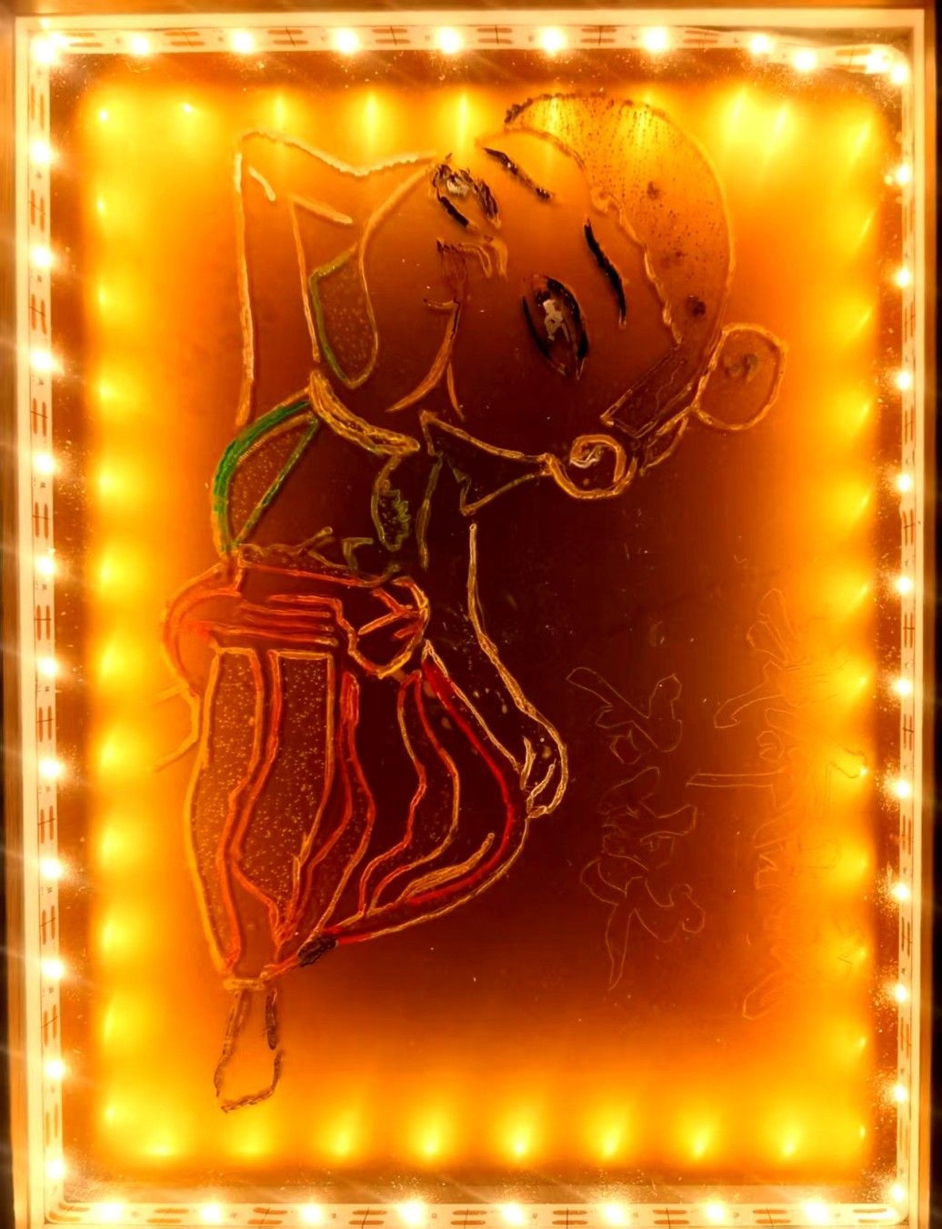 6、现我介决了这难题,保证全手工制作,且正反面平整光滑,在加配Led灯照下,光影效果漂亮。且材质可适用各种透明载体。外形和书画内容也可按需人性化定制。