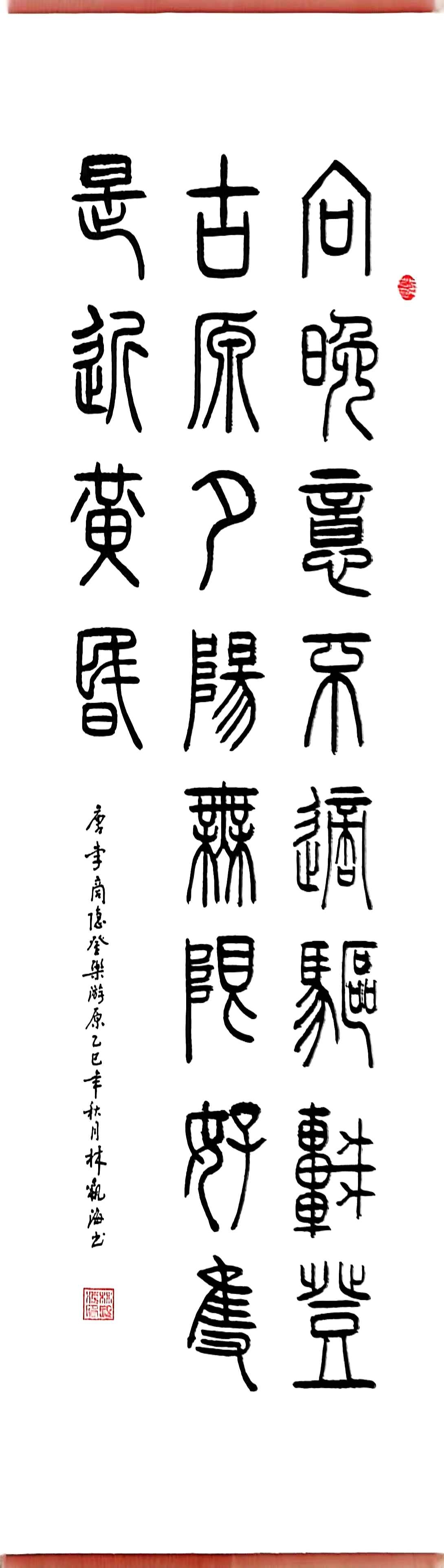 林观海,男,1952年6月出生,浙江平阳人。在1976年9月、2000年8月分别毕业于浙江工业大学和湖南理工大学,高级工程师,特级书法师。现为中国通俗文艺研究会理事,中央国家机关书法家协会会员,中国传统文化促进会会员,中国书画家联谊会会员,香港文联书法家协会副主席,中国人美出版社荣誉社长,中国东方文化研究会高级艺术顾问,国礼艺术家(编号:lCA—2916),中国民族建筑研究会书画艺术专业委员会副秘书长,中国服务贸易协会国际交流工作委员会会员,中国书画院院士,中国翰林书画院院士,世界非物质文化遗产研究院副院长,人民书画报理事会主席,英联邦北京协会特邀首席艺术顾问,中国书画研究中心书法委员会会长,国艺委书画艺术博物馆馆长,海南国联文化艺术研修院硕士研究生院导师,获得西班牙皇家艺术协会、毕加索故居博物馆和巴塞罗那艺术学院共同颁发的优秀导师奖,获得国际非遗领军人物和全国首批非遗大国工匠荣誉证书和奖章。2024年8月获得工业和信息化部工业文化发展中心颁发的高级艺术品鉴赏师证书。被中国书画产业研究基地聘为专家组成员(终身)。2024年9月,草书作品王维《山居秋暝》获得莫奈艺术奖金奖。2024年11月,被中国关心下一代工作委员会教育中心授予“优秀指导师”称号、并在中书协、西冷印社和中国语文报刊协会共同举办的第十二届全国规范汉字书写大会活动中,获得软笔一等奖。同时,任职温州职业技术学院“特聘教授”。其次被华夏国艺评为高级书画理论家,并获得商业国际交流合作培训中心高级社会工作者荣誉证书。2024年12月还被聘为全球华人企业家联盟副秘书长职务。并获得“2024年度中国文学艺术界年度人物”、“首届非遗中国年重磅推荐艺术家”及“2024非遗年度人物”荣誉称号!2024年底还获得一项“釉上星彩”吉尼斯世界纪录。 2025年新春伊始,就被中央新影中学生频道艺术之旅聘任高级顾问。并被该中学生频道《时代强国》栏目组授予“社会责任艺术家”荣誉称号!2025年2月份,本人作品入编《世界里的中国》,该书由英国麦克米伦出版公司出版(中英文),并由英国皇家美术学院,苏富比美术学院,剑桥大学,牛津大学等世界著名大学收藏。与此同时,本人参加了由意大利中意国际文化交流协会主办的“水墨中华”中国书画展,获得了荣誉证书和奖章。在2025全国两会召开之际,本人作品入选“艺术献两会”官方媒体报道,获得CCTV文艺传媒荣誉证书,并授予“当代艺术精英”荣誉称号! 三月份 ,本人作品入编《时代责任与艺术担当——2024年度华夏书画艺术领军人物汇编》和《非遗文化》书籍。同时入编CCTV文艺传媒推出的《春天里的中国》官方媒体报道活动,并授予“国际形象大使”荣誉称号! 四月份,为建党104周年,出了《荣光璀璨,共谱华章》个人专集。本人作品入编《中华国礼》文化年鉴,并获得了中华国礼文化年鉴艺术顾问奖杯。中国书画家联谊会新文艺群体书画家工作委员会授予本人“特聘书画家”。四月底获得中国人力资源职业发展中心“高级文化传承师”证书。